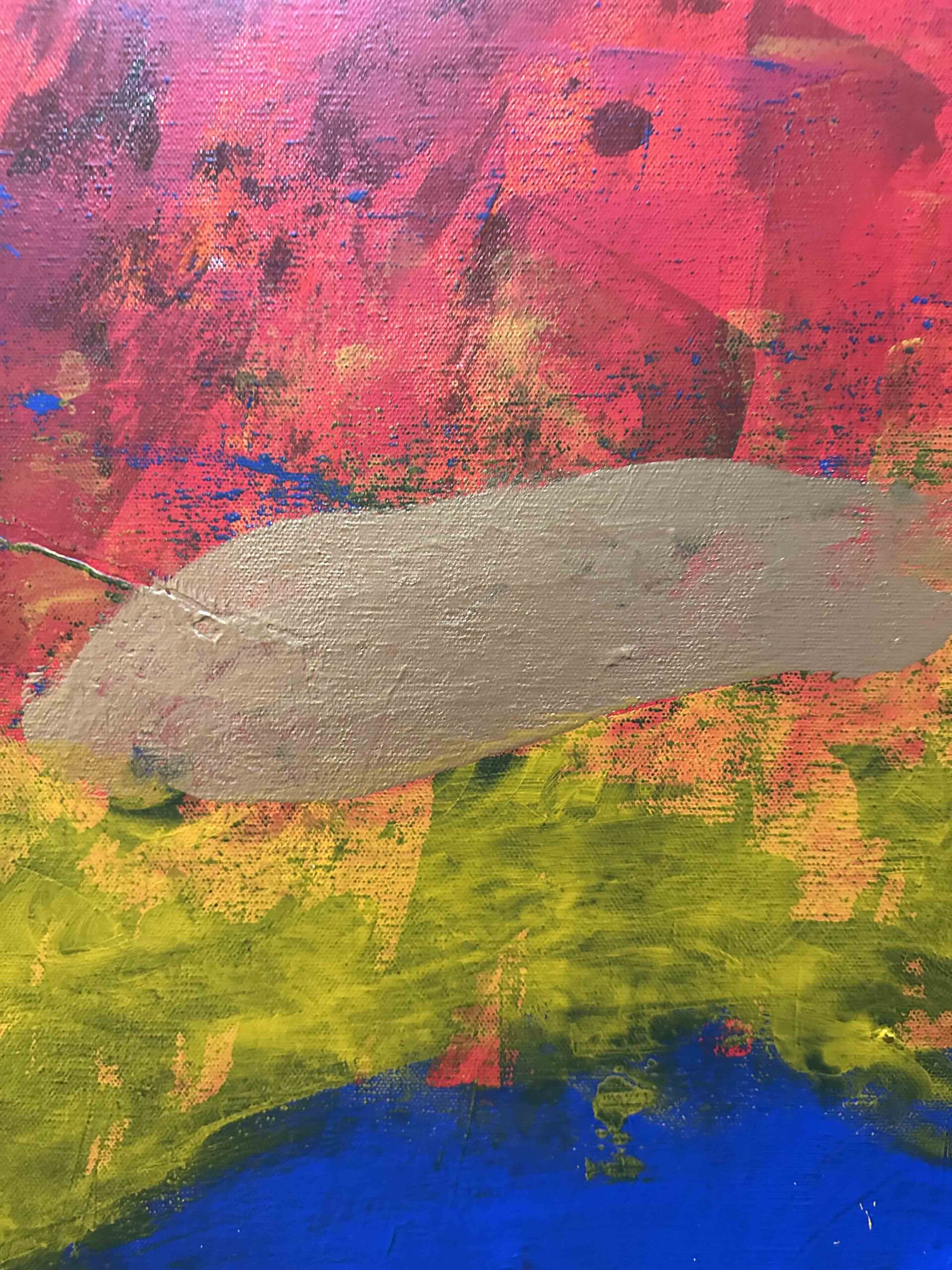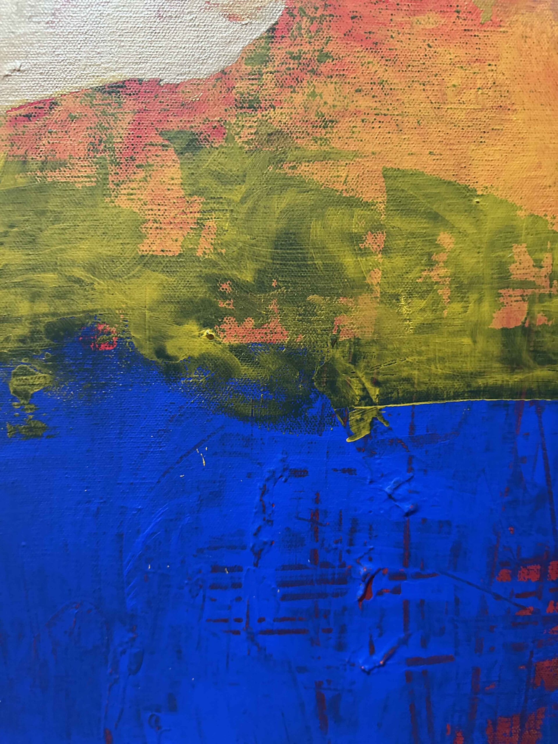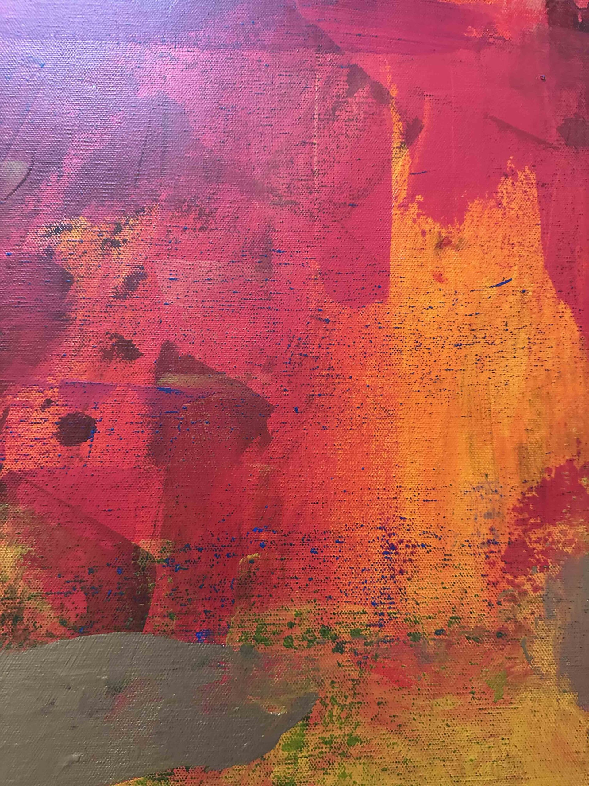 A vibrant abstract landscape inspired by the colors of autumn. Bold reds, oranges, and yellows blend with earthy greens and deep blues, creating a striking statement piece for any space.