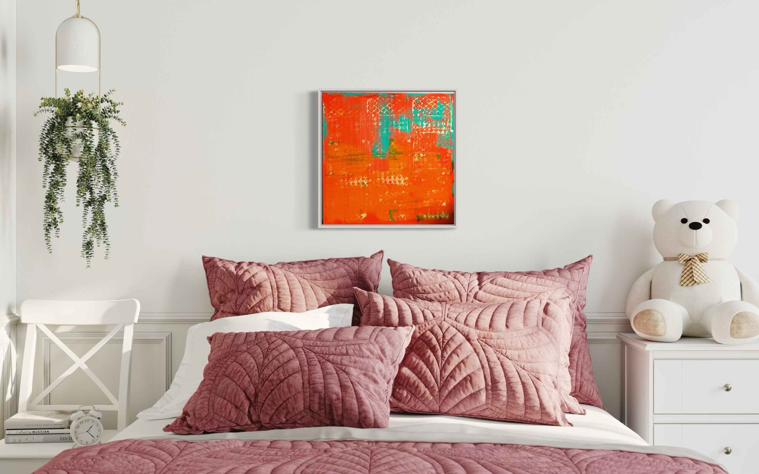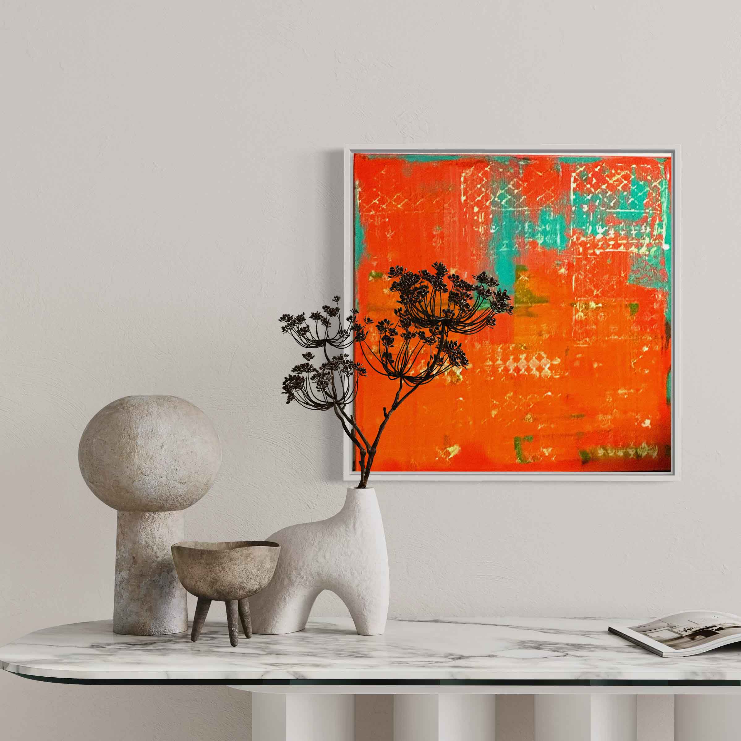 A contemporary abstract inspired by traditional textile patterns. Vibrant colors and rhythmic brushstrokes echo the woven beauty of Ikat, bringing cultural charm with a modern edge.